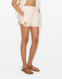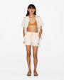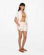 The Charles Applique Embroidery, with its bold graphic look, is inspired by the artistic elegance of Paris's Belle Epoque, reimagined with a modern edge. This design plays with transparency and volume, creating a look that is both dramatic and decorative. These shorts, with their clean lines and intricate detail, embody a new era of expression.