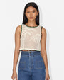 Inspired by our JOAO crochet story, this handmade cotton piece features placed motifs influenced by Brazilian fauna and flora, crafted to move naturally with the body.