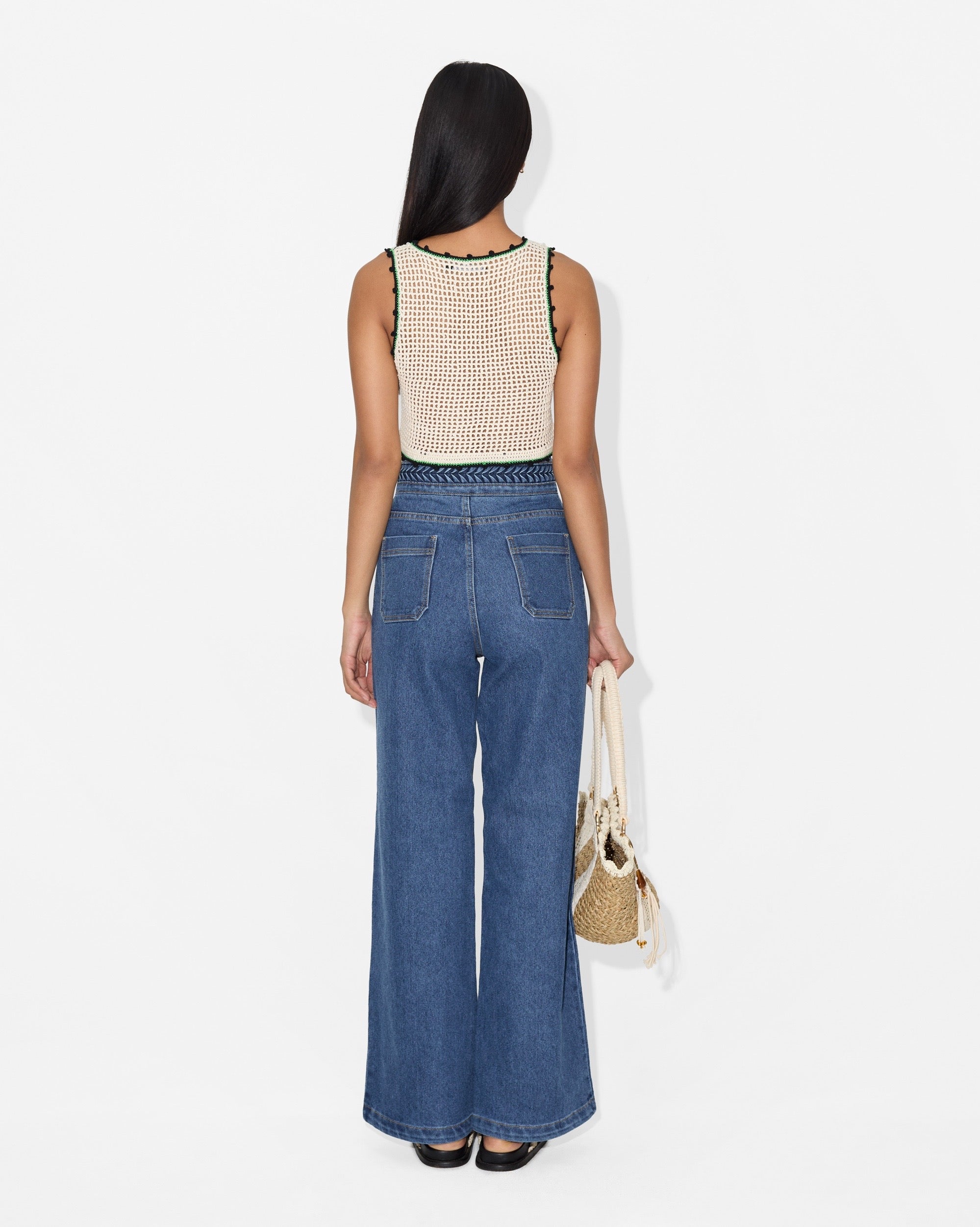 • Fitted stretch crochet crop silhouette.